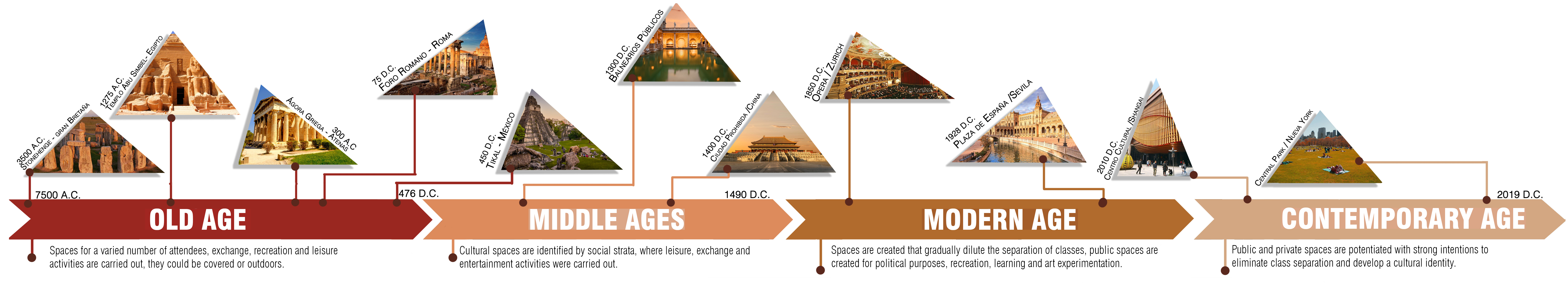 The function of a Cultural Center has not been seen altered over the years and remains that of recreation, leisure, and exchange of experiences or culture. What we can observe is the change in shape in which this function is fulfilled, going from squares to spas, theaters, museums, and finally, enhancing the spaces audiences that allow this interaction between elements from space.