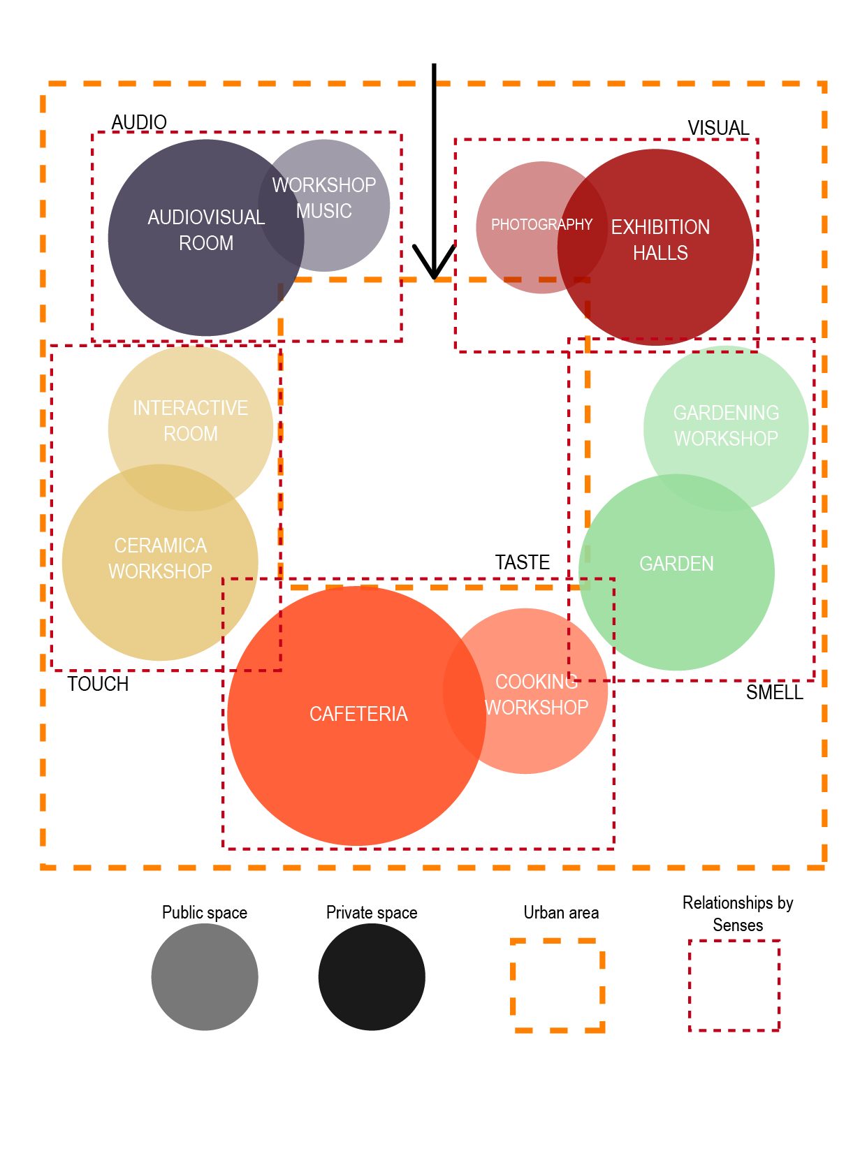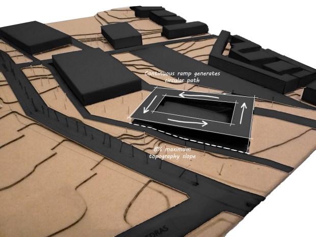 The circulation will form a main element within the spatial organization, a dynamic route between spaces will be generated.