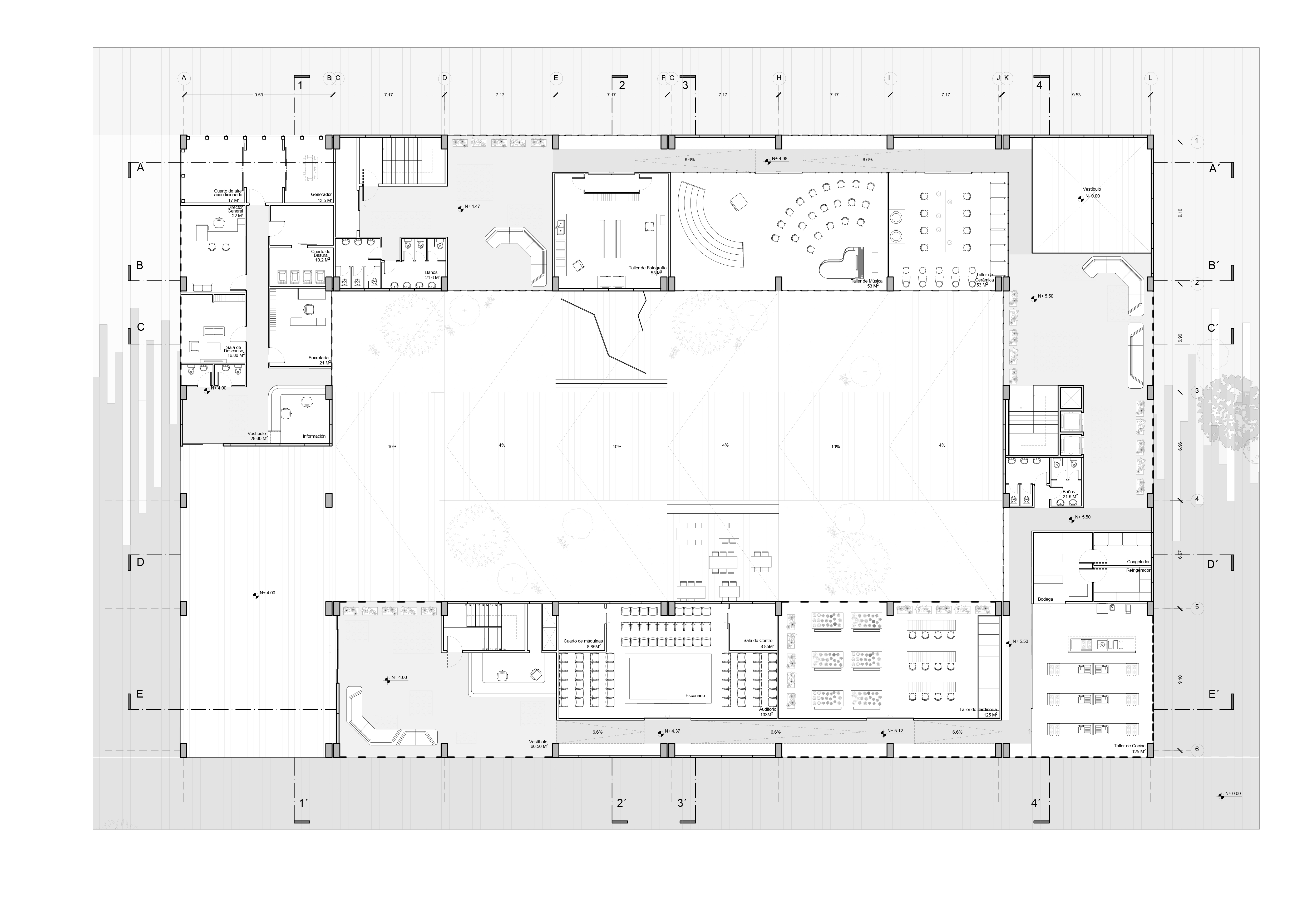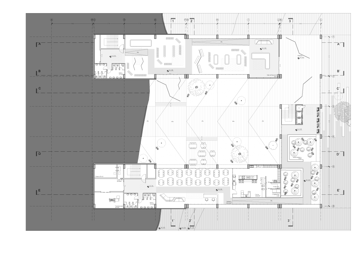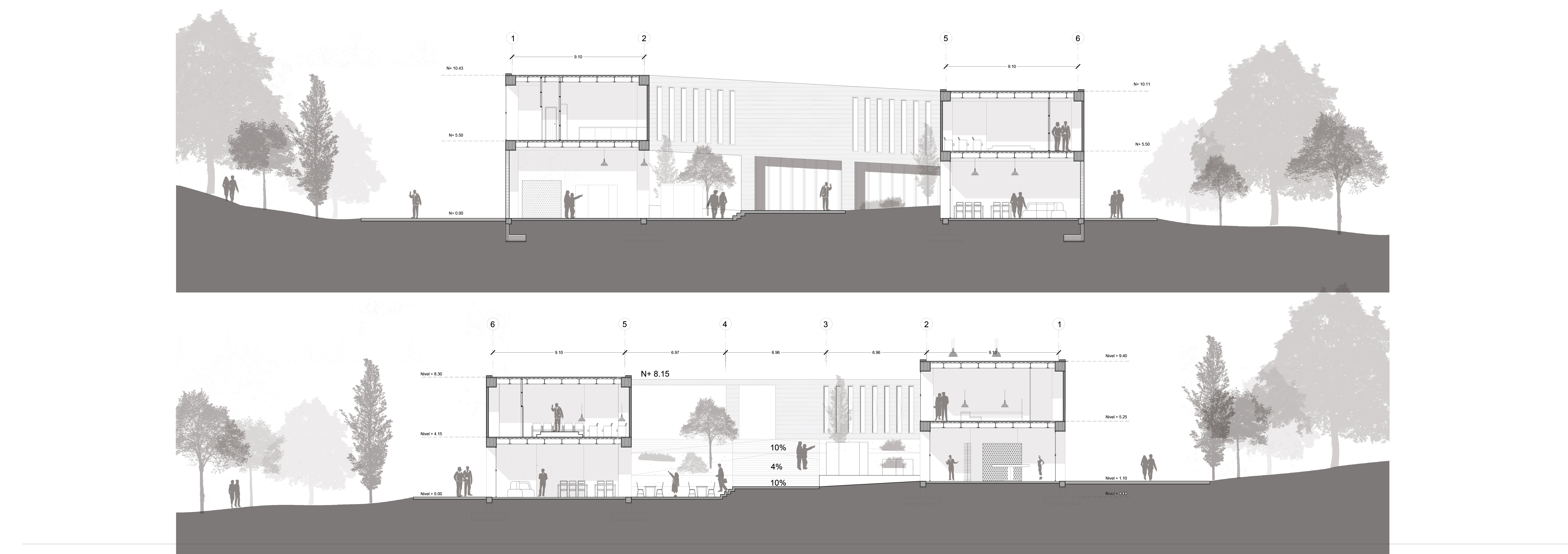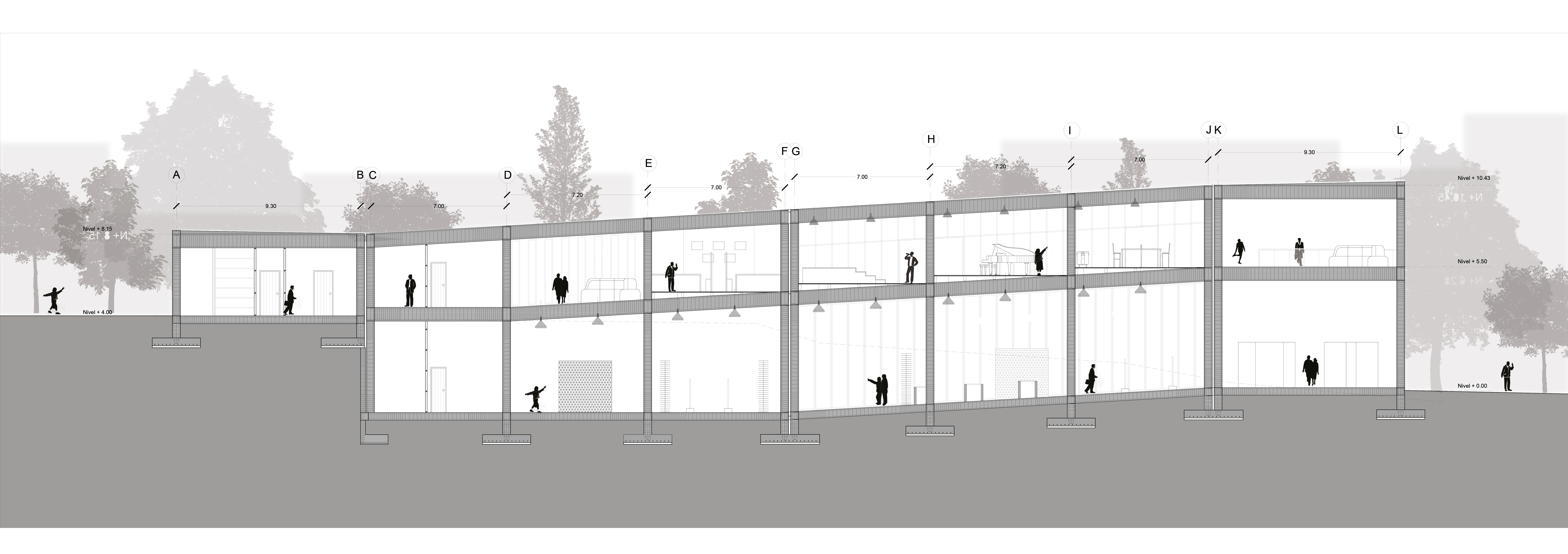 The plans adapt to the topography of the place so they generate a user-friendly ramp circulation. Two plans are defined to distribute the necessary program mentioned above.