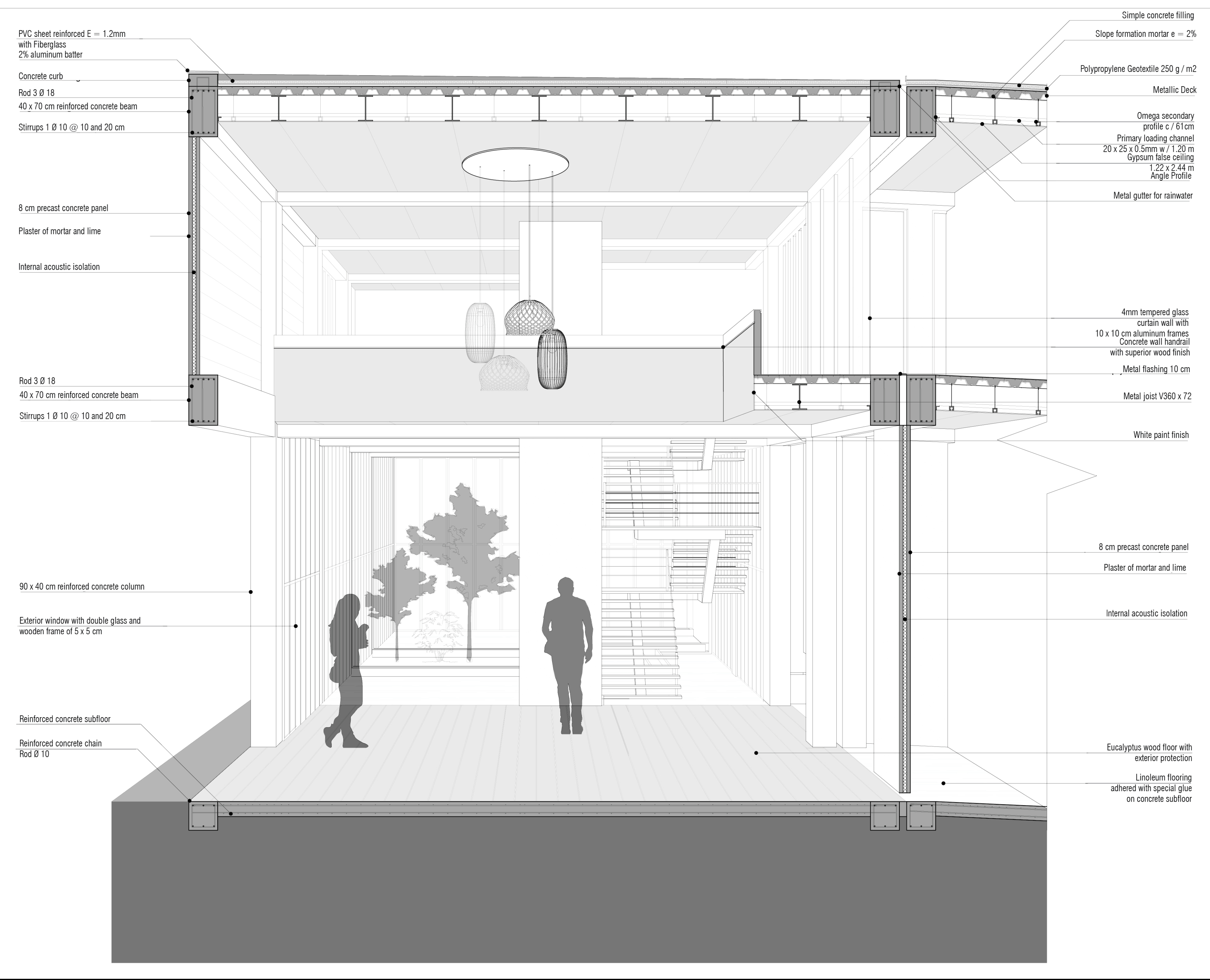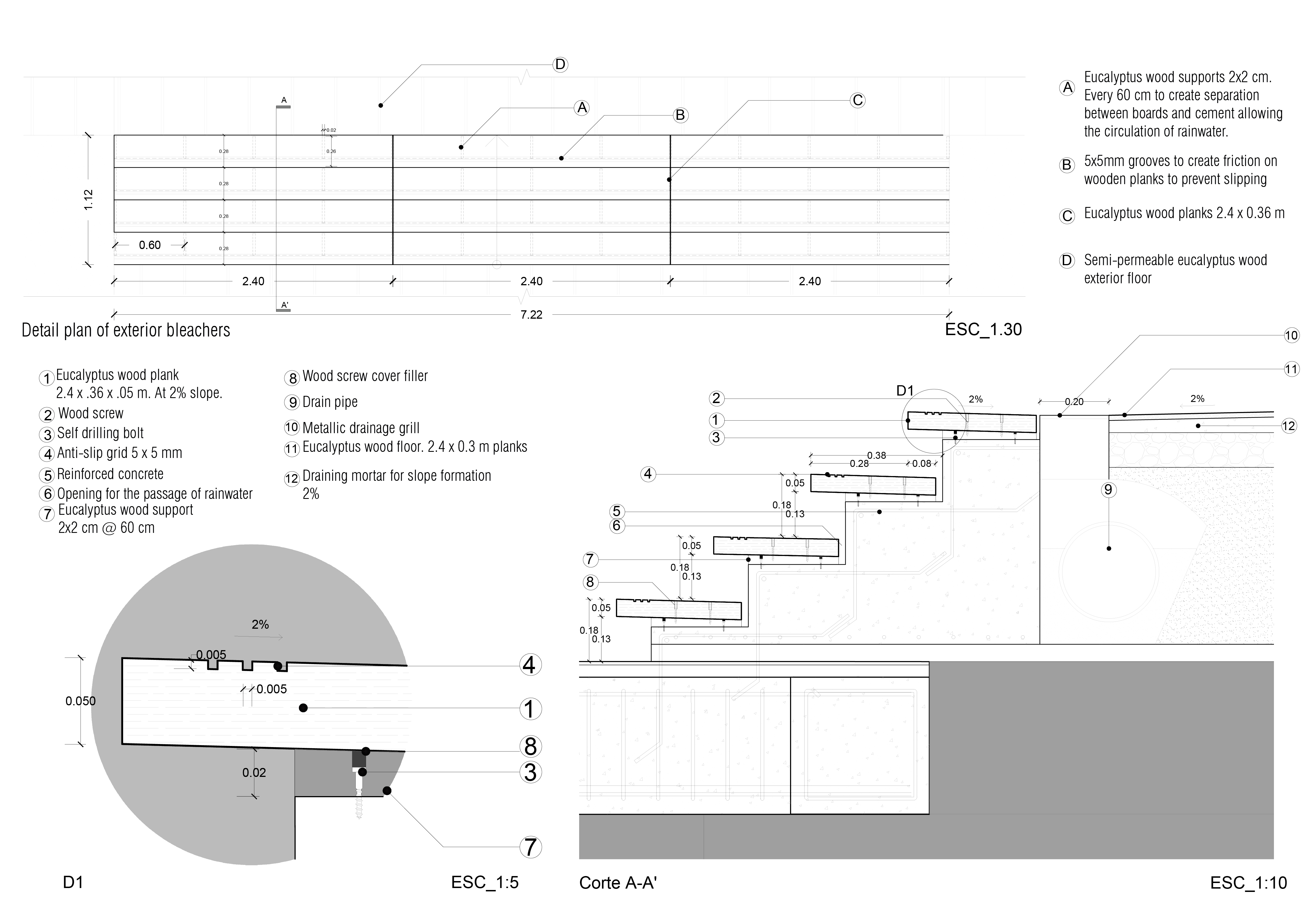 A concrete arcaded structure will be used reinforced, with concrete with a compressive strength of 210 f’c. The maximum lights of the project contemplate 9.35 m, and 4.30 m overhangs, they will also have a maximum of two floors with level + 10.00 m.
