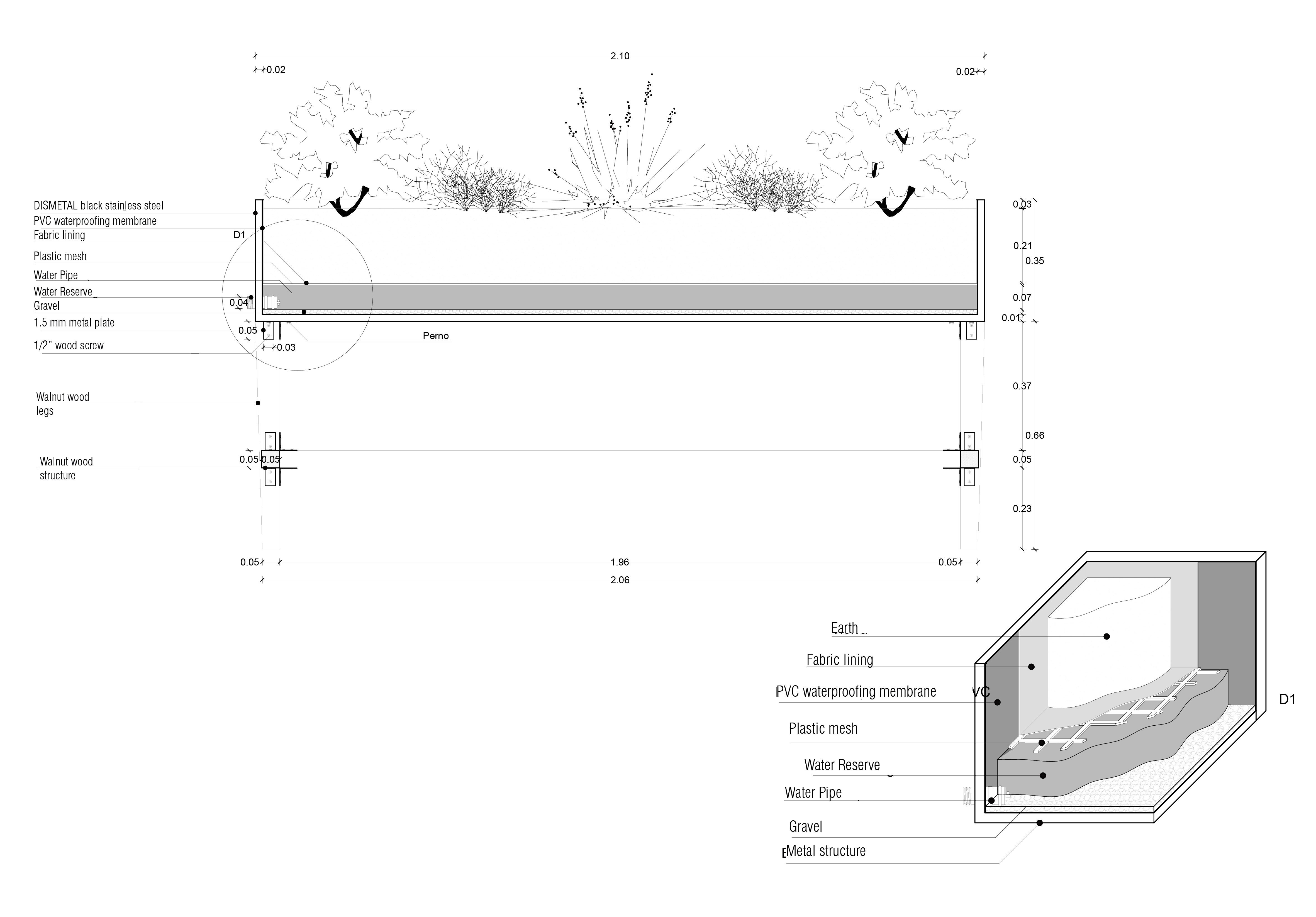 • In the buried part, a wall of 5 cm separates containment from the columns.