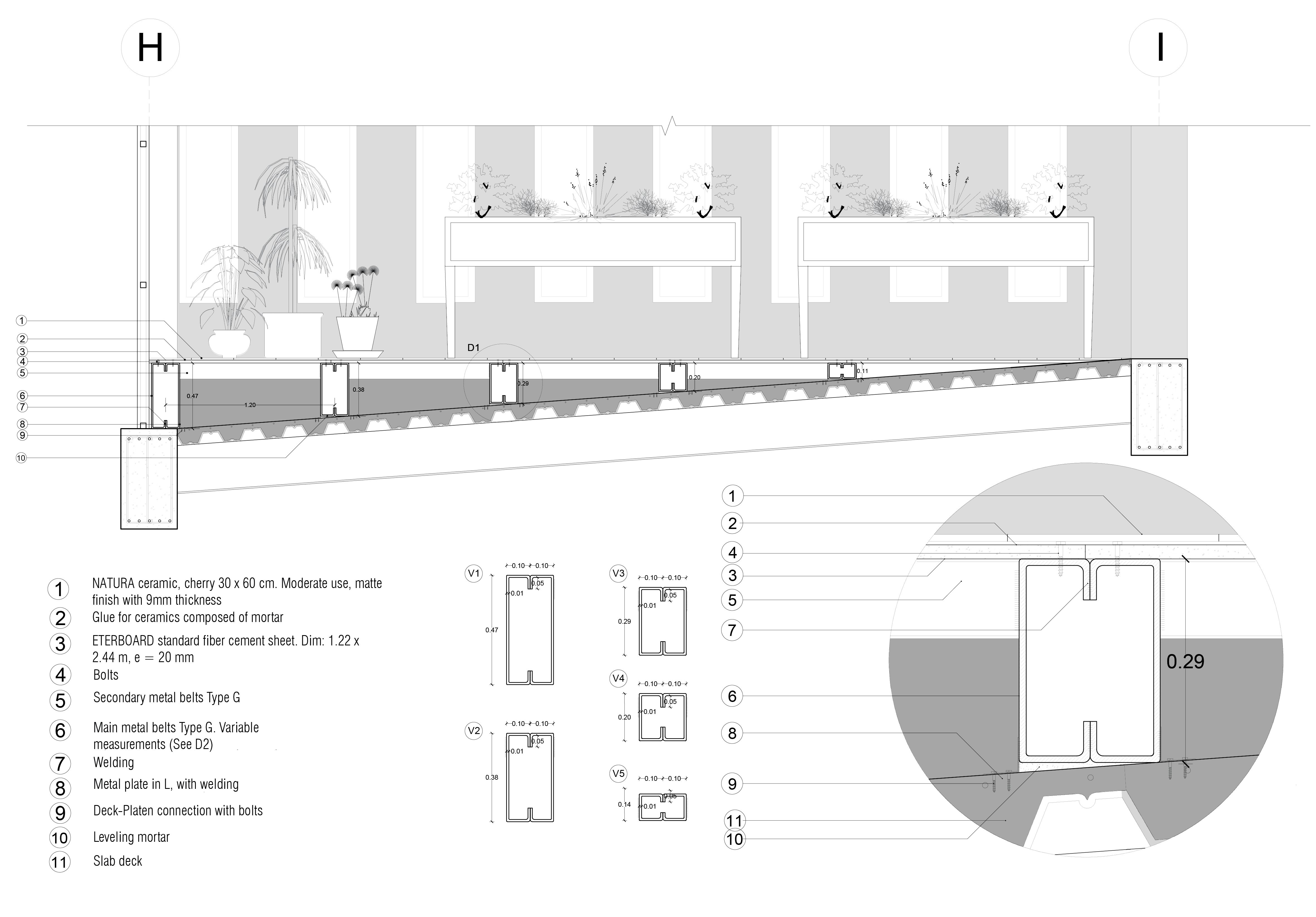 Vertical resistance systems: Columns will be used and reinforced concrete beams, secondary steel joists in I of 35cm of superelevation, complemented with a slab type deck and insulated footings.
