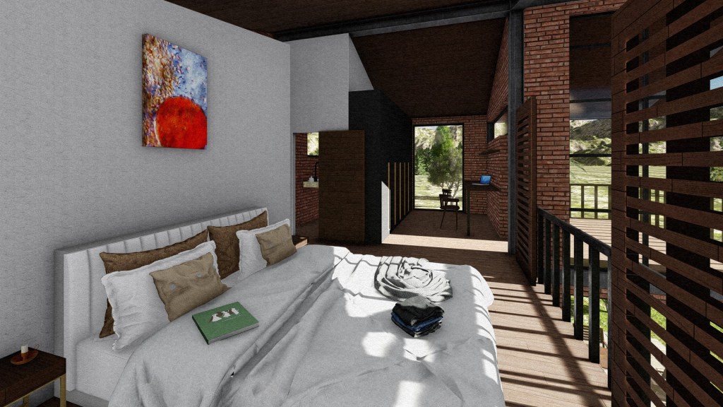 This Airbnb design, nestled amidst the awe-inspiring volcanoes of Imbabura and Cotacachi in Cotacachi, Ecuador, embraces the breathtaking views with its open concept and expansive windows. Every room is bathed in natural light and showcases the surrounding landscape.